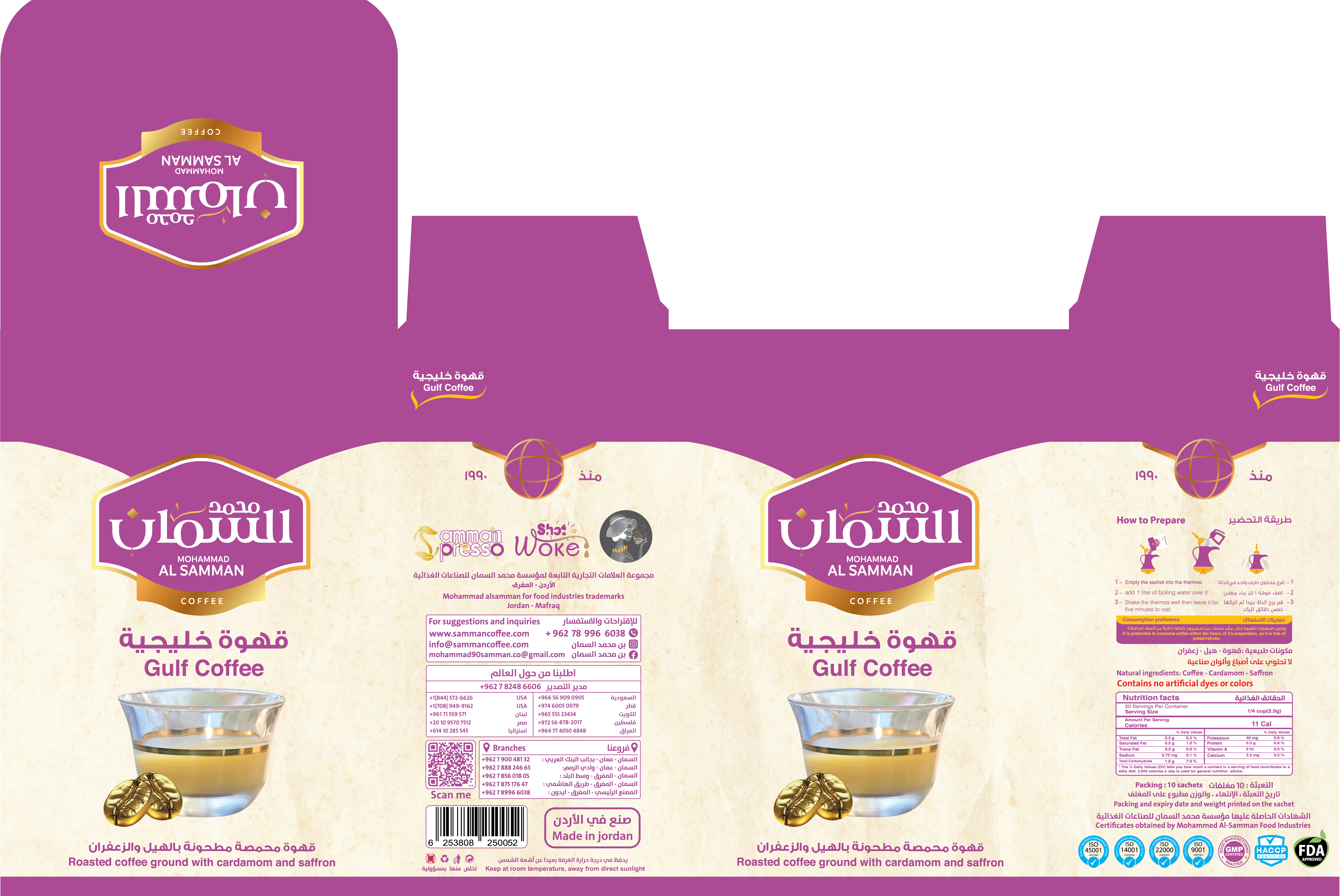 Mohammad Al Samman Gulf Coffee Roasted & Crushed with Cardamom & Saffron – 10 PACKS X 10 grams each