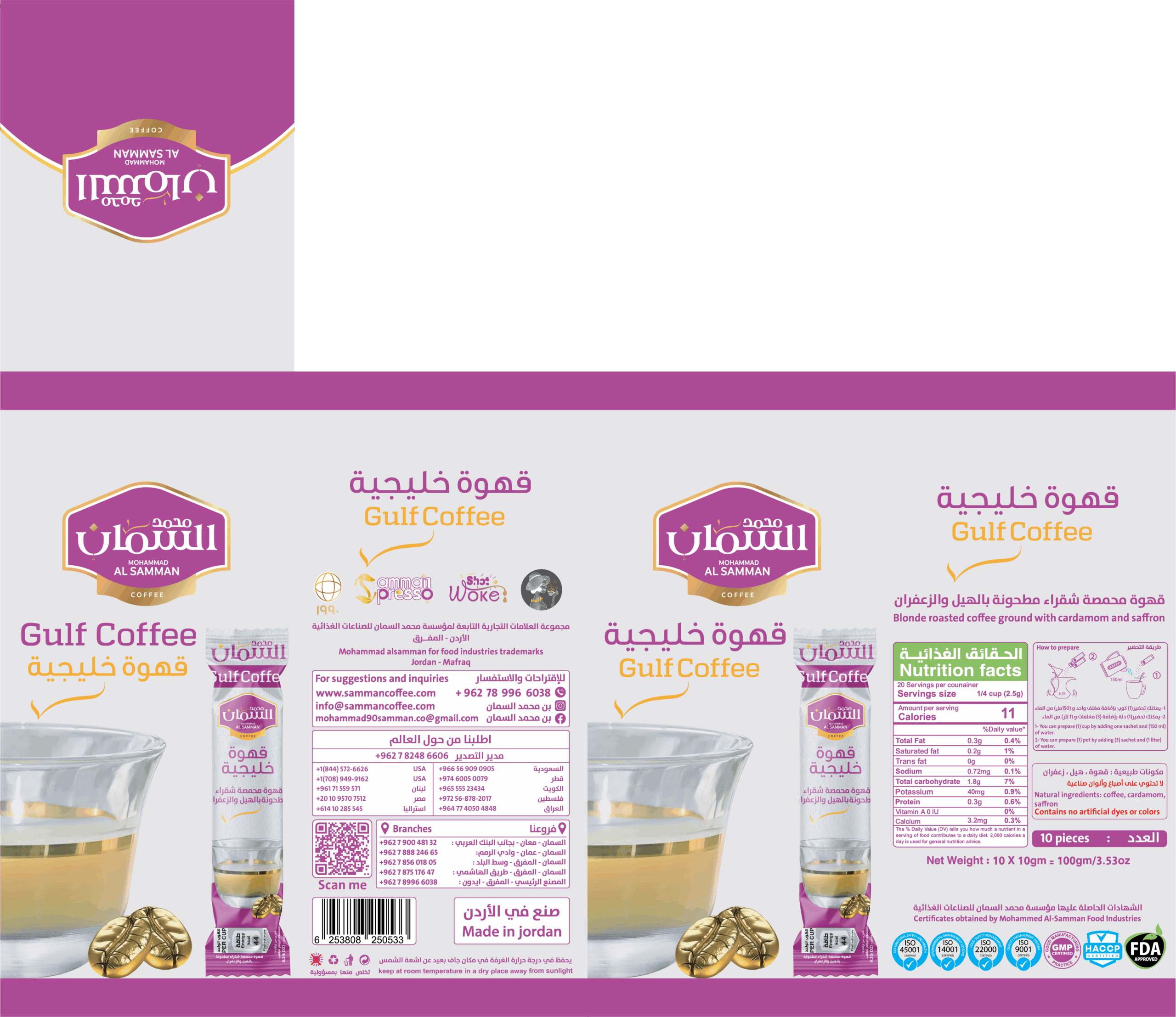 Al Samman Gulf Coffee Roasted with Cardamom & Saffron -12 Packs 10 grams each